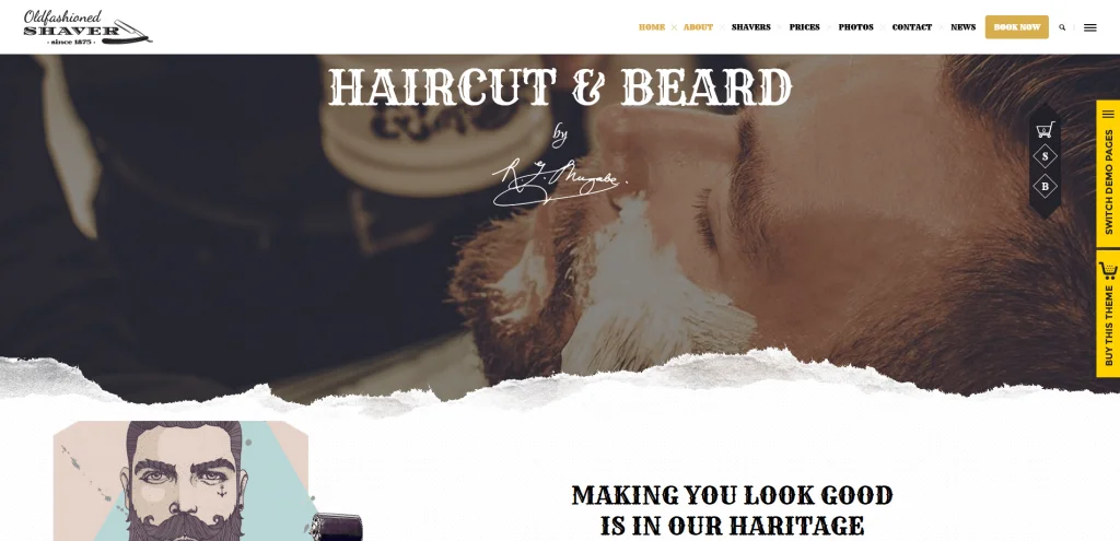 Shaver es una solución premium para sitios web de salones, pero también es ideal para otros sitios web relacionados. Aunque viene con demostraciones, también le permite agregar columnas, filas y otros elementos utilizando WPBakery Page Builder. Este tema de WordPress para spa y salón viene con más de 40 elementos prefabricados personalizados que se agrupan en grupos lógicos. Son accesibles con un solo clic y le permiten reorganizarlos fácilmente. Shaver le ahorra tiempo con el Administrador de reserva de citas, que permite a sus clientes reservar citas con usted fuera de su sitio.
