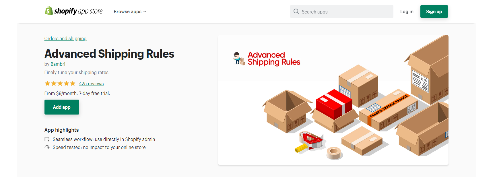Establece precios de envío separados para cada producto con la ayuda de Reglas de envío avanzadas, una de las mejores aplicaciones de envío de Shopify.