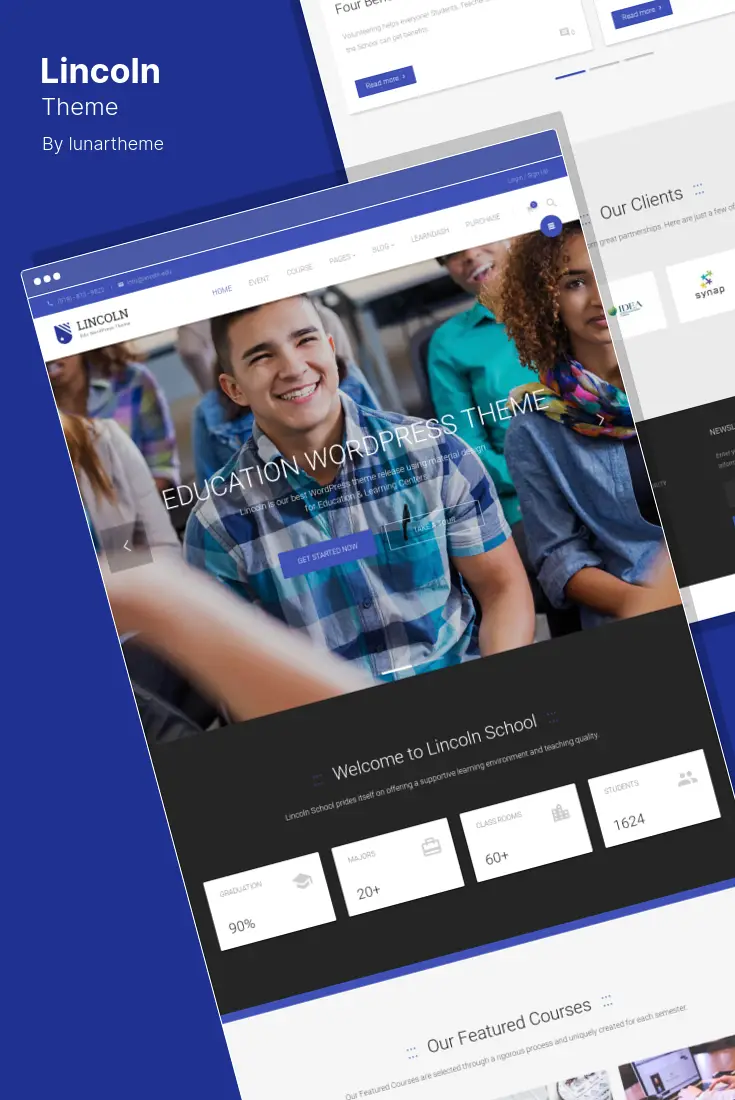 Lincoln es un tema notable de WordPress diseñado específicamente para centros de educación y aprendizaje. Es una opción ideal para organizaciones educativas como universidades, escuelas, cursos en línea y centros de capacitación.