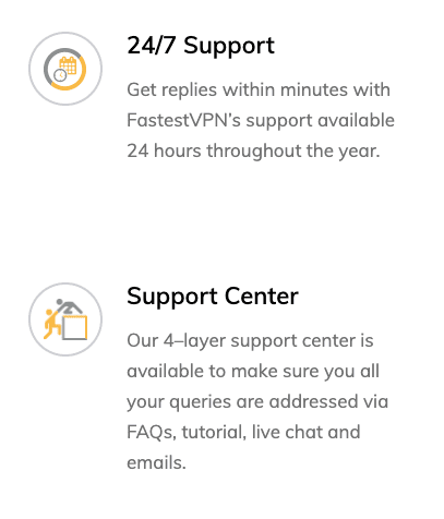 Il n'existe aucune fonctionnalité plus largement annoncée que le célèbre support client de FastestVPN. Pas étonnant; leur service a été construit sur le principe de fournir la meilleure expérience. Pour cette raison, même si vous n'aimez pas leurs services, tous leurs forfaits sont assortis d'une politique de remboursement garantie de 15 jours, et toute question ou requête peut être répondue via leur chat client en direct ou par leur centre de support client dédié.