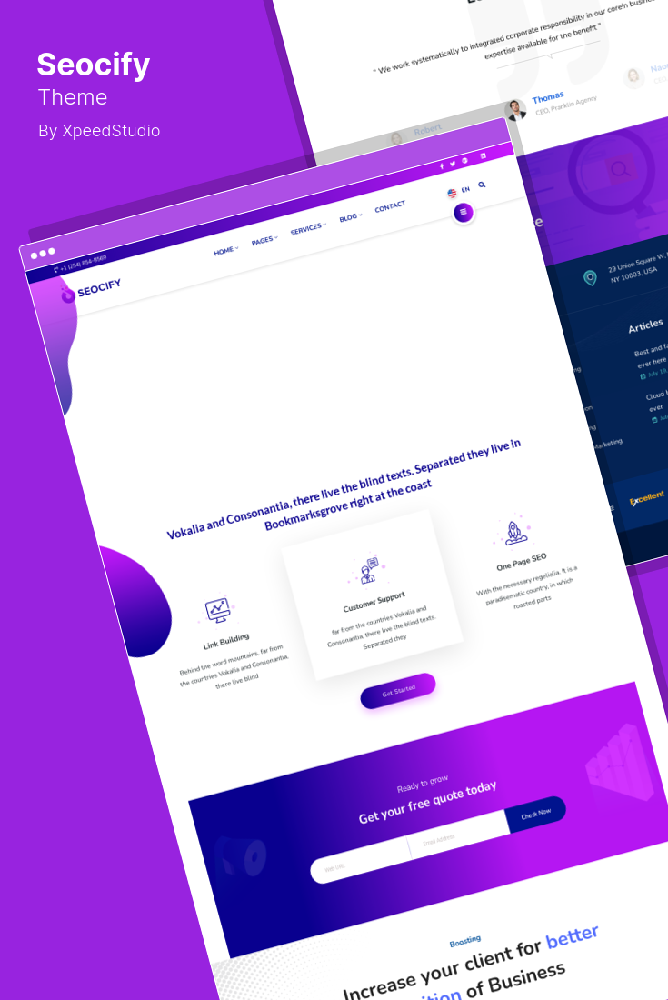 Seocify est un thème WordPress d'agence de référencement et de marketing numérique pour le marketing en ligne, la société de référencement et les sites Web d'agences à la mode.