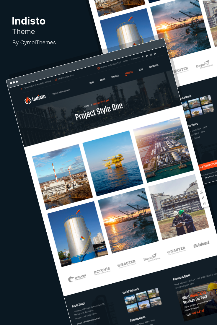 Un thème comme Innox a été développé spécifiquement pour les sociétés d'ingénierie, les entreprises sidérurgiques, les fabricants de polymères et de composites, les usines mécaniques et d'autres entreprises de fabrication industrielle.