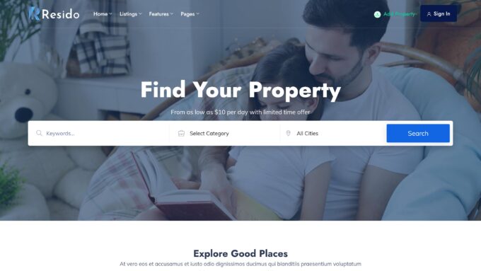 Resideo propose des modèles magnifiquement conçus pour vous aider à lancer un site Web immobilier de qualité supérieure.