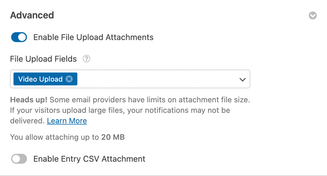 De plus, WPForms permet aux utilisateurs de votre formulaire de télécharger une vidéo à soumettre avec leur formulaire de leur côté. Cela distingue WPForms des autres plugins vidéo et est l'une des fonctionnalités les plus utiles pour placer ce plugin sur notre liste.