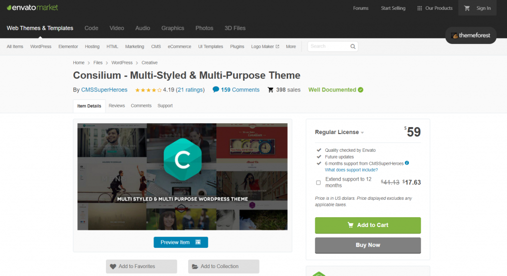 Consilium est livré avec une conception entièrement réactive et une pléthore de fonctionnalités accompagnées de plugins WordPress premium tels que Slider Revolution, Essential Grid, Visual Composer et Icon Heaven.