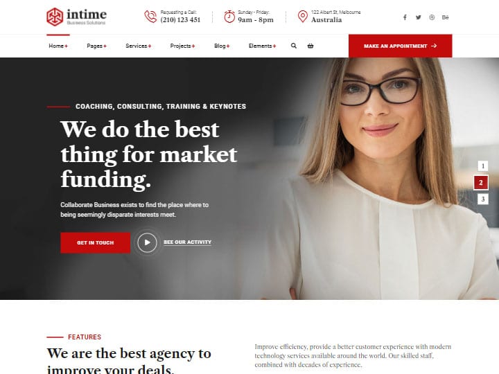 Intime est un thème WordPress axé sur les affaires avec plus de 10 démos de sites Web élégantes.