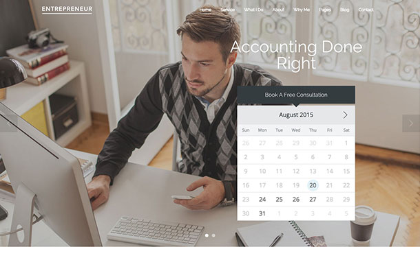 Entrepreneur est disponible dans un certain nombre de modes préconfigurés, ce qui le rend idéal pour une gamme de différents types de sites Web. Parmi ces options, vous en trouverez une spécialement conçue pour les comptables.