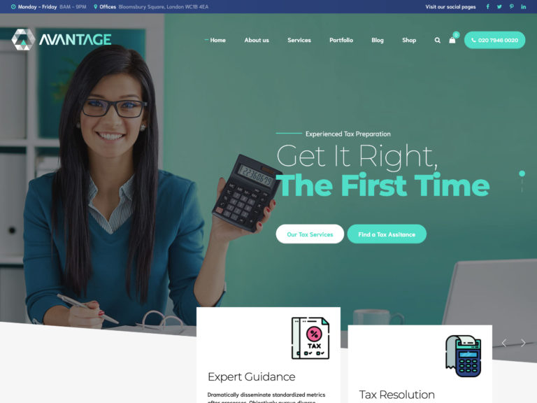 Avantage propose une démo de site Web de comptabilité pré-construite qui vous aidera à promouvoir vos services en ligne.
