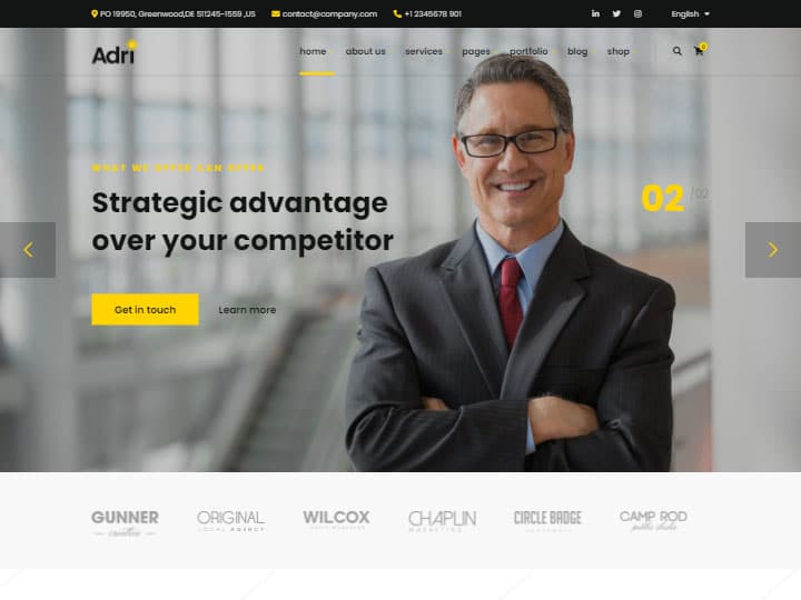 Adri est un autre thème WordPress de conseil aux entreprises qui fonctionne bien pour la création de sites Web de comptabilité.