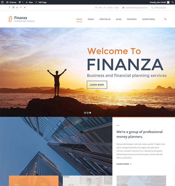 Finanza est un excellent thème WordPress professionnel polyvalent, mais il devrait particulièrement plaire à quiconque propose des services financiers.