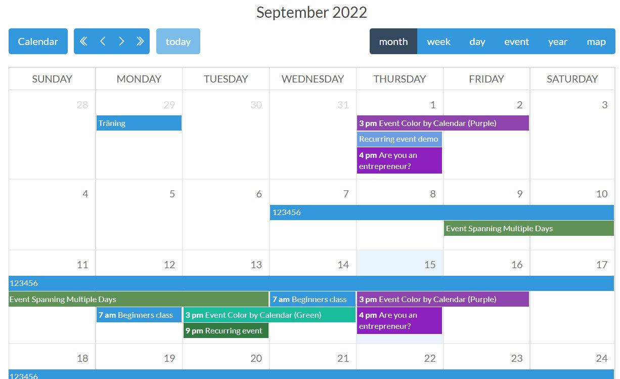 - De beaux calendriers, des pages de recherche, des listes et des formulaires de réservation pour améliorer les événements sur votre site Web ;