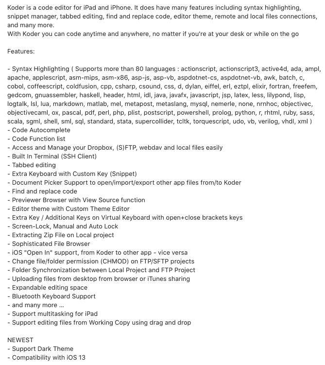 Il s'agit d'un outil tout-en-un qui vous permet de coder, d'accéder à des serveurs via SSH ou FTP, de gérer des extraits de code et de faire quelques autres choses. À mon avis, cette application rivalise en fait avec les alternatives de bureau - et c'est gratuit !