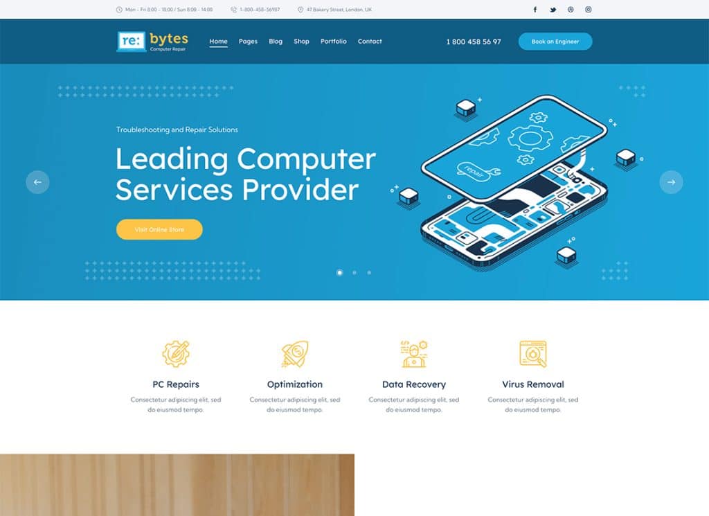 Plus d'informations / Télécharger la démoRe:bytes – Thème WordPress pour le service de réparation d'électronique et d'ordinateurs