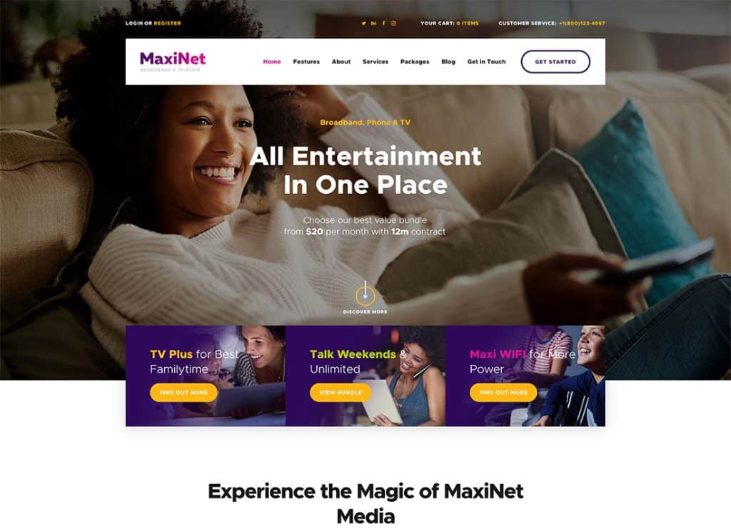 Plus d'informations / Télécharger la démoMaxiNet – Thème WordPress pour fournisseur d'accès Internet haut débit et télécommunications