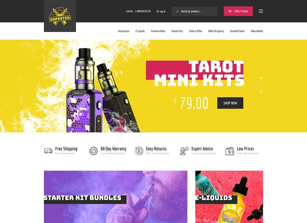Plus d'informations / Télécharger la démoVapester – Thème WooCommerce pour magasin de cigarettes créatif et boutique de vape