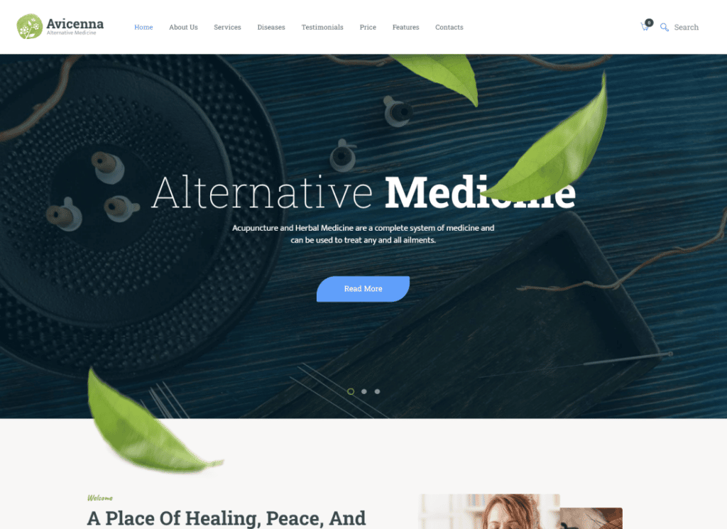 Plus d'infos / Télécharger la démoAvicenne – Thème WordPress pour docteur en médecine populaire alternative + boutique