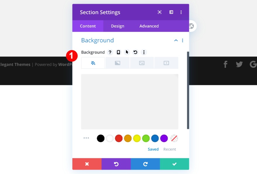 Ouvrez les paramètres de la section et modifiez la couleur d'arrière-plan.