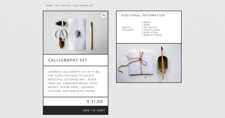 Publié: 2019-11-21Vous recherchez un design de page de produit épuré et minimal pour votre boutique en ligne ? Aujourd'hui, nous avons un design inspiré de l'esthétique japonaise. C'est un style commun pour les magazines et les sites Web japonais minimaux. Cela permet de lire facilement le texte, de voir les produits et de ne pas se laisser distraire. Suivez le didacticiel ci-dessous pour recréer ce modèle pour vos propres produits. Vous pourrez également télécharger le fichier modèle JSON gratuitement !