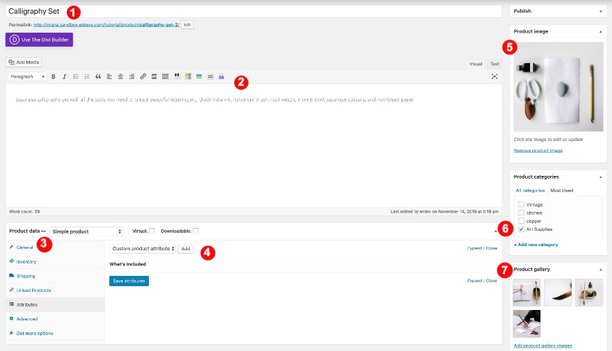 Ouvrez ou créez un nouveau produit WooCommerce. Pour recréer ce design de produit inspiré de l'esthétique japonaise, vous devrez remplir les détails suivants :
