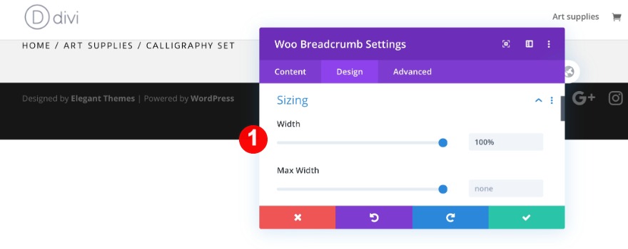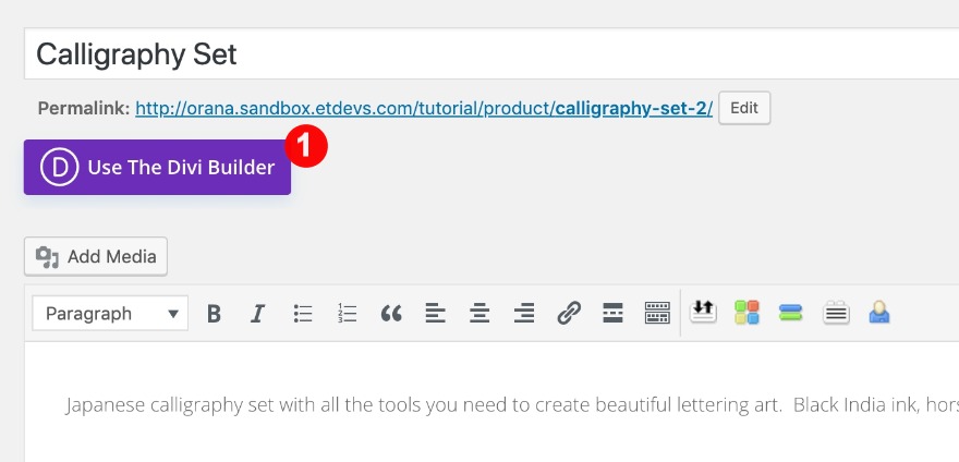 Lorsque toutes les données du produit sont prêtes, activez le Divi Builder et modifiez la mise en page en « pleine largeur ».