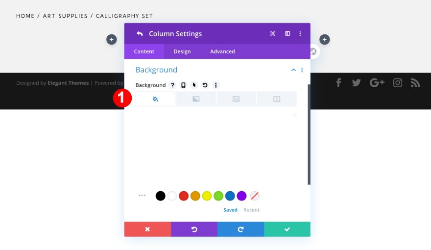 Continuez avec les paramètres de colonne. Les colonnes 1 et 2 ont le même style. Commencez par l'arrière-plan.