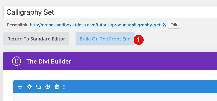 Maintenant, passez au constructeur visuel. Cliquez sur le bouton qui dit « construire sur le front-end ».