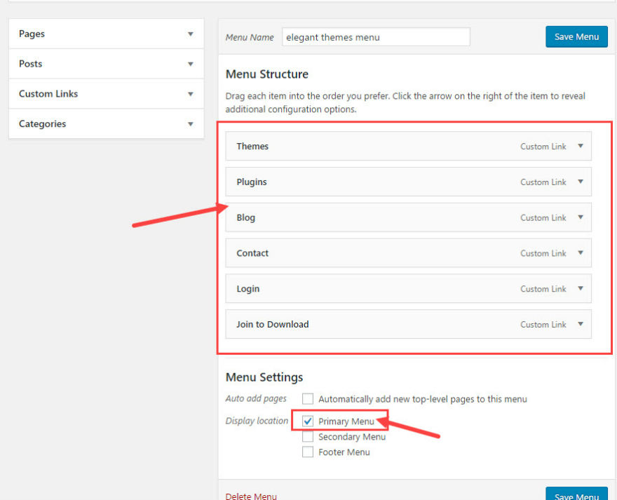 Une fois que vous avez terminé d'ajouter les liens à votre menu, sélectionnez le nouveau menu comme menu principal de votre site.