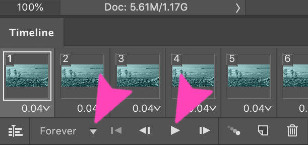 Pour accéder à la fenêtre de chronologie et voir comment le GIF fonctionne en boucle, cliquez sur Fenêtre > Chronologie. Un long panneau horizontal s'ouvrira dans la partie inférieure de votre écran. Dans le coin inférieur gauche, il y a quelques contrôles. Choisissez l'option de boucle comme « Pour toujours » et appuyez sur le bouton de lecture pour voir à quoi ressemble le GIF. Dans notre cas, notre GIF a l'air plutôt bien mais est encore trop long. À plus de 200 images et avec un ajustement des couleurs, le fichier final fait un énorme 312 Mo. Vous pouvez vérifier la taille de votre fichier final en suivant les étapes de la section « Enregistrer en tant que GIF » ci-dessous. Après avoir jeté un coup d'œil, appuyez simplement sur annuler au lieu d'enregistrer. Vous pourrez également diminuer la taille du fichier avec les options Exporter pour le Web.