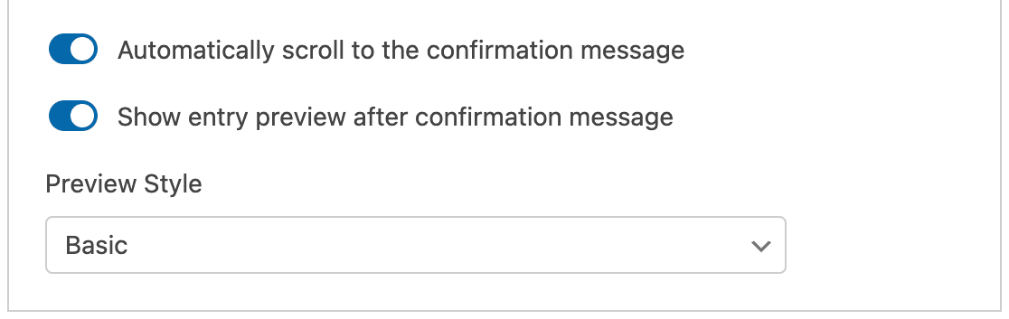 Vous pouvez toujours utiliser les aperçus des entrées (qui s'affichent lorsqu'un formulaire est en cours de remplissage) ainsi que la confirmation de l'aperçu (qui n'apparaît qu'après la soumission des entrées). Ou vous ne pouvez utiliser que l'une ou l'autre de ces options. Tout dépend de vos préférences et de ce que vous essayez d'obtenir avec vos formulaires.