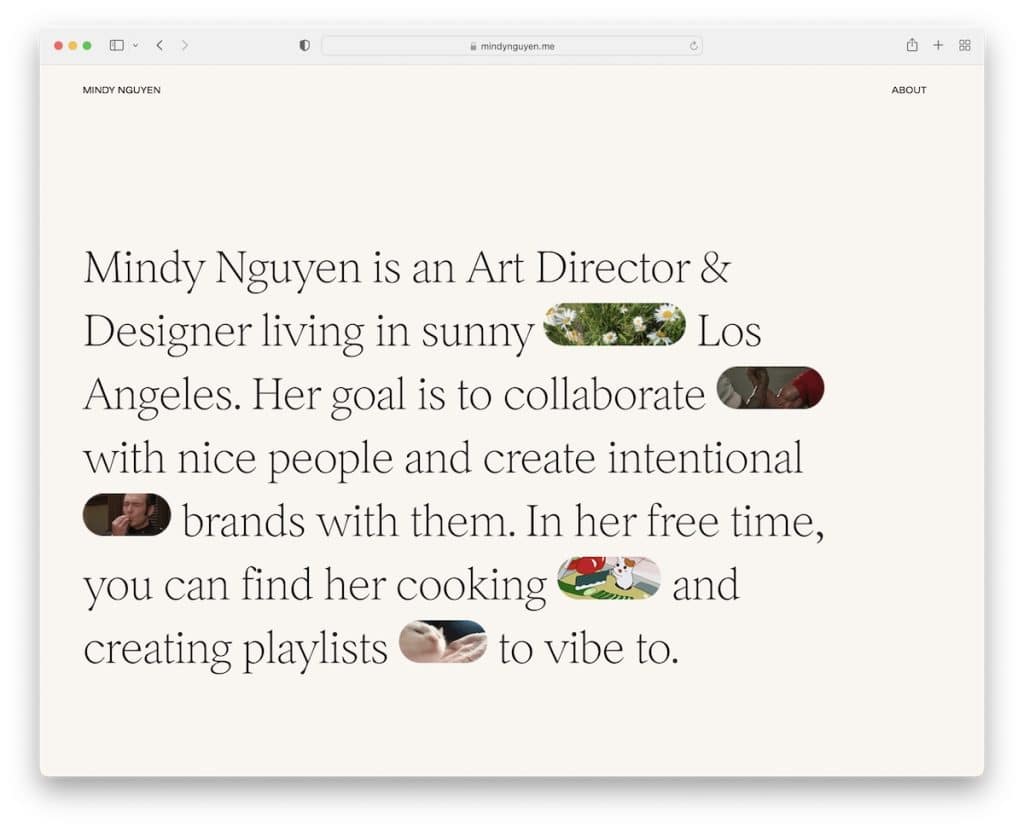 La combinaison d'une grande typographie (choisissez des polices lisibles), d'un contenu visuel et d'un espace blanc peut nécessiter une expérience de portfolio inoubliable.
