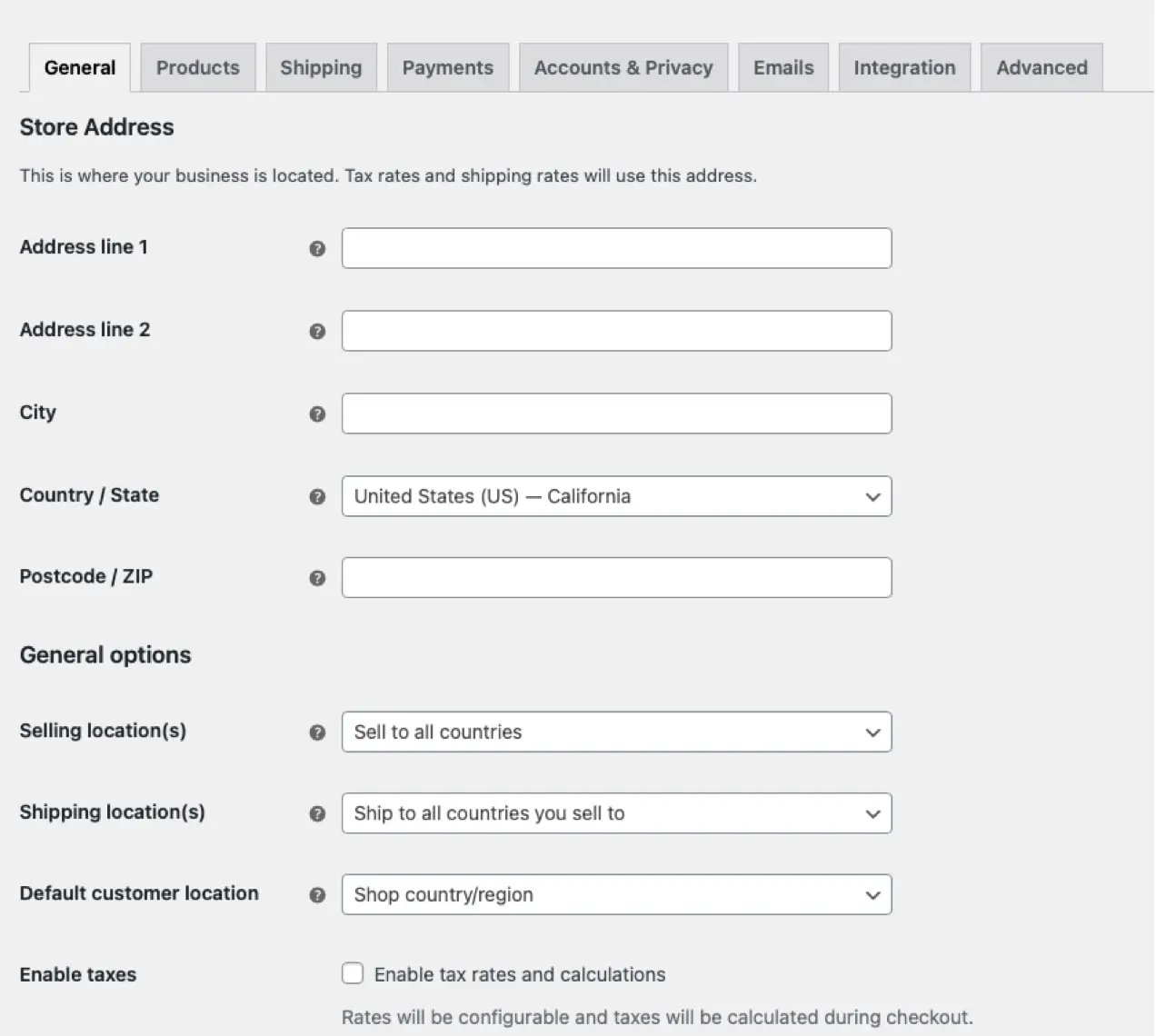Vous devrez également configurer vos paramètres fiscaux. Cela inclut des choses comme la taxe de vente et la TVA.