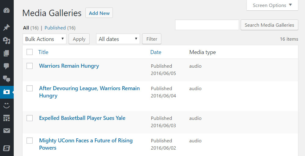 Les galeries de photos haute résolution sont un excellent moyen de montrer le talent de votre équipe et d'être reconnu dans les médias. Le thème Splash porte les galeries et la section multimédia de WordPress à un nouveau niveau. Avec la galerie multimédia de Splash, vous pouvez garder une trace des fichiers audio, des clips vidéo et des photos de votre équipe au même endroit.