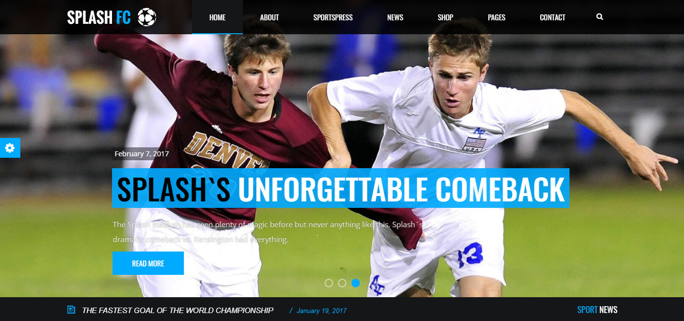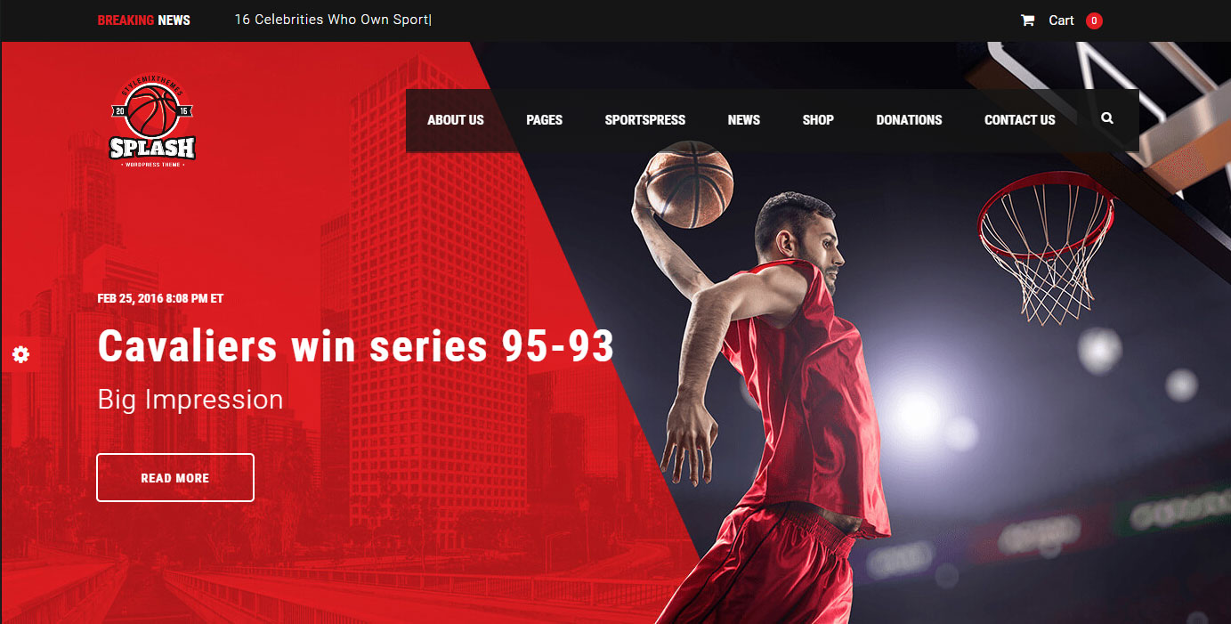 Un site Web d'équipe sportive entièrement fonctionnel doit être en mesure de fournir aux fans un certain nombre de fonctionnalités. Des statistiques et des calendriers aux scores et à une boutique en ligne, le thème Splash couvre toutes les bases.