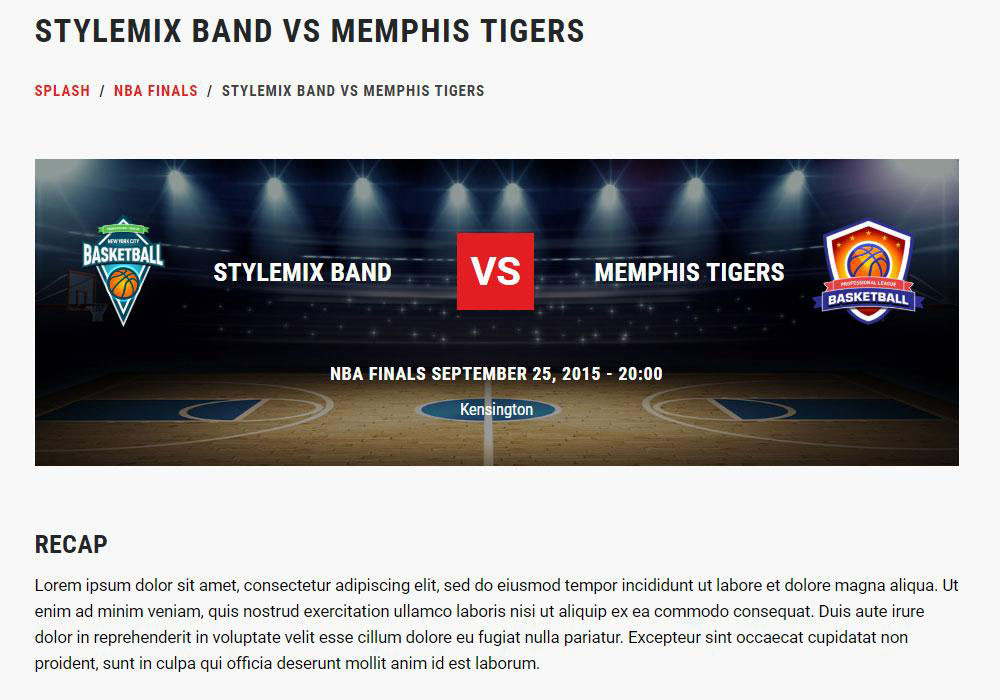 En parlant de récapitulation, Splash est également livré avec des modèles de blog conçus uniquement pour les reportages sportifs. Non seulement cela vous aidera à décomposer les matchs passionnants pour vos fans, mais cela vous aidera également à augmenter votre référencement en fournissant à Google des mots-clés importants pour votre équipe.