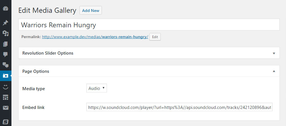Mais cela ne signifie pas que vous devez commencer à télécharger vos vidéos YouTube sur WordPress. Collez simplement l'URL de vos fichiers audio ou vidéo à partir d'un site comme YouTube ou SoundCloud directement dans votre Splash Media Gallery.