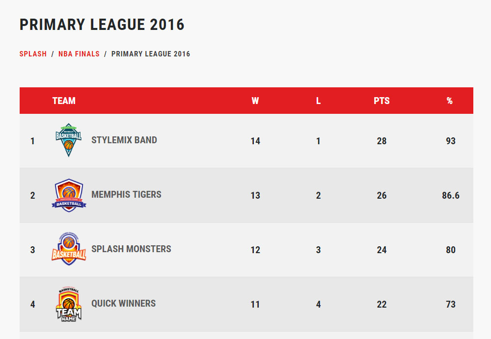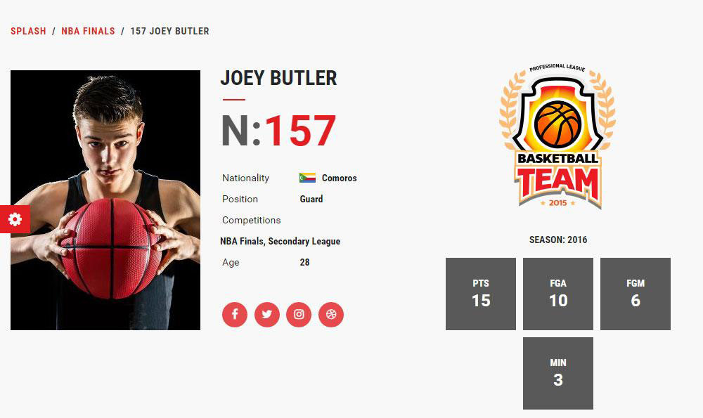 Le thème Splash fournit un certain nombre de modèles de pages spécialement conçus pour les équipes sportives. La publication de statistiques, de rencontres, de scores, etc. est essentielle pour offrir la meilleure expérience aux fans et aux visiteurs du site Web.