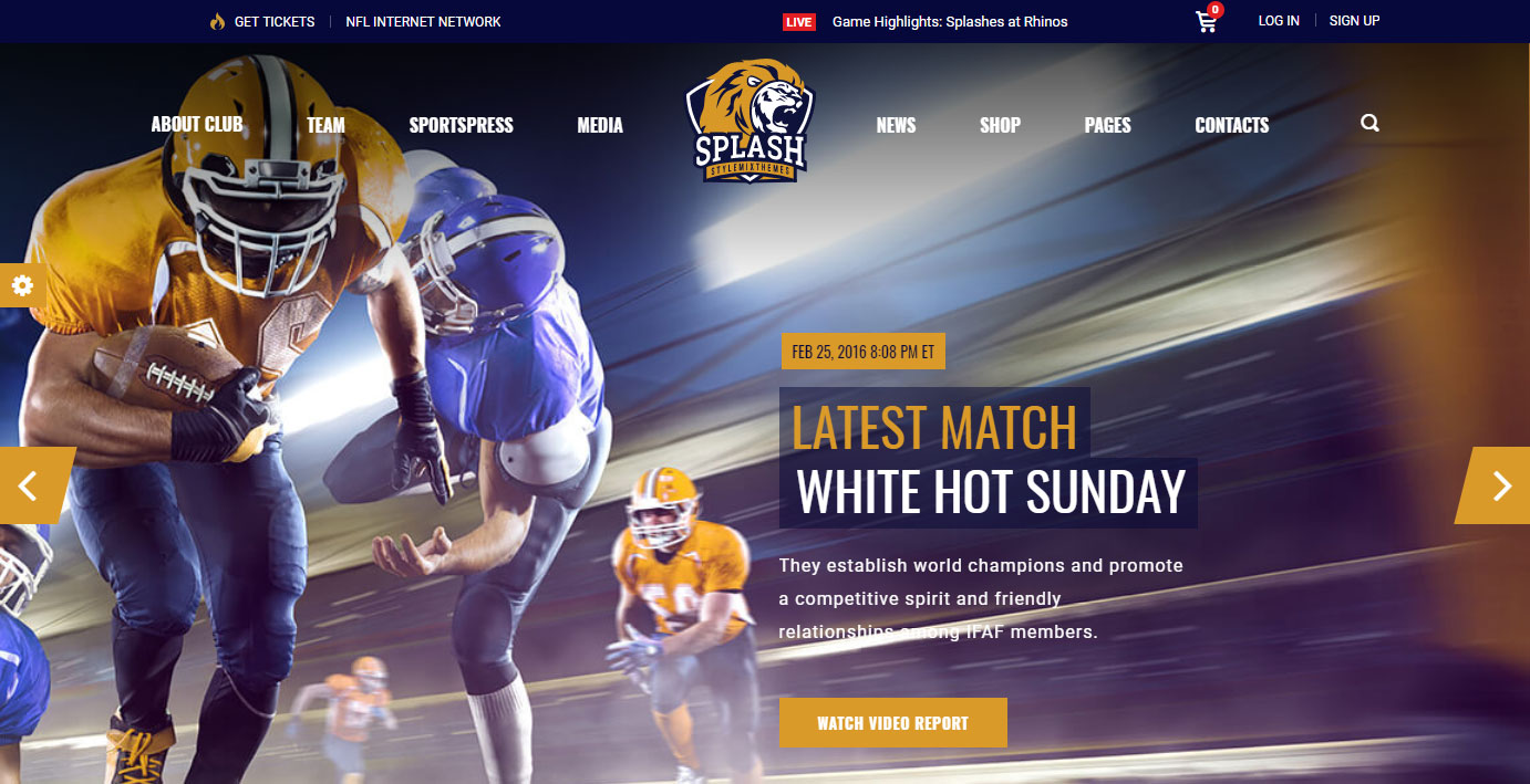 Les concepteurs de Splash ont clairement un œil pour une conception Web propre. Chaque élément de page fonctionne ensemble pour créer un design élégant et élégant qui s'intégrera parfaitement aux meilleurs sites Web sportifs professionnels d'aujourd'hui.