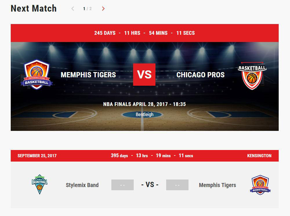 Monétisez votre site en ajoutant une boutique en ligne pour vendre des maillots et autres vêtements de marque, et assurez-vous que les fans ne manquent jamais un match en faisant la promotion des matchs à venir avec un compte à rebours, une carte du lieu et un calendrier de la saison.