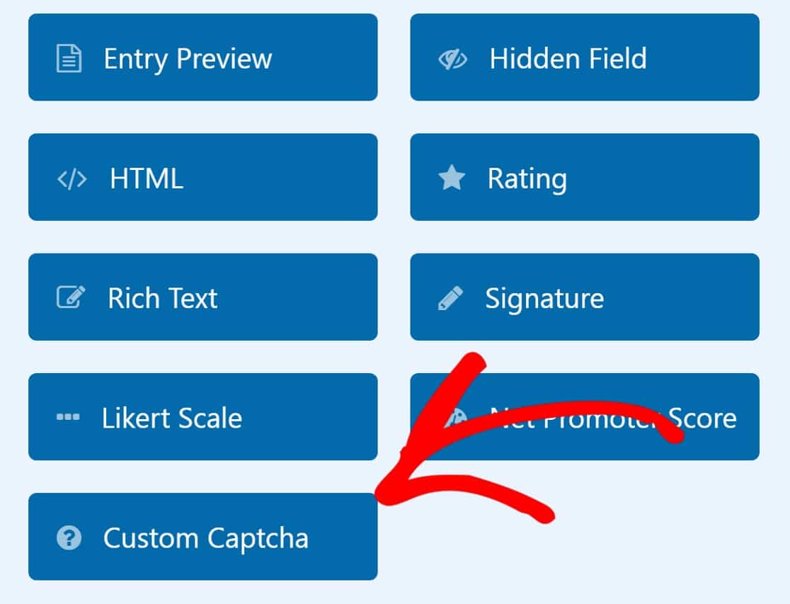 Ou, vous pouvez ajouter un Captcha personnalisé à votre formulaire en le faisant glisser depuis les champs fournis sur votre générateur de formulaire.