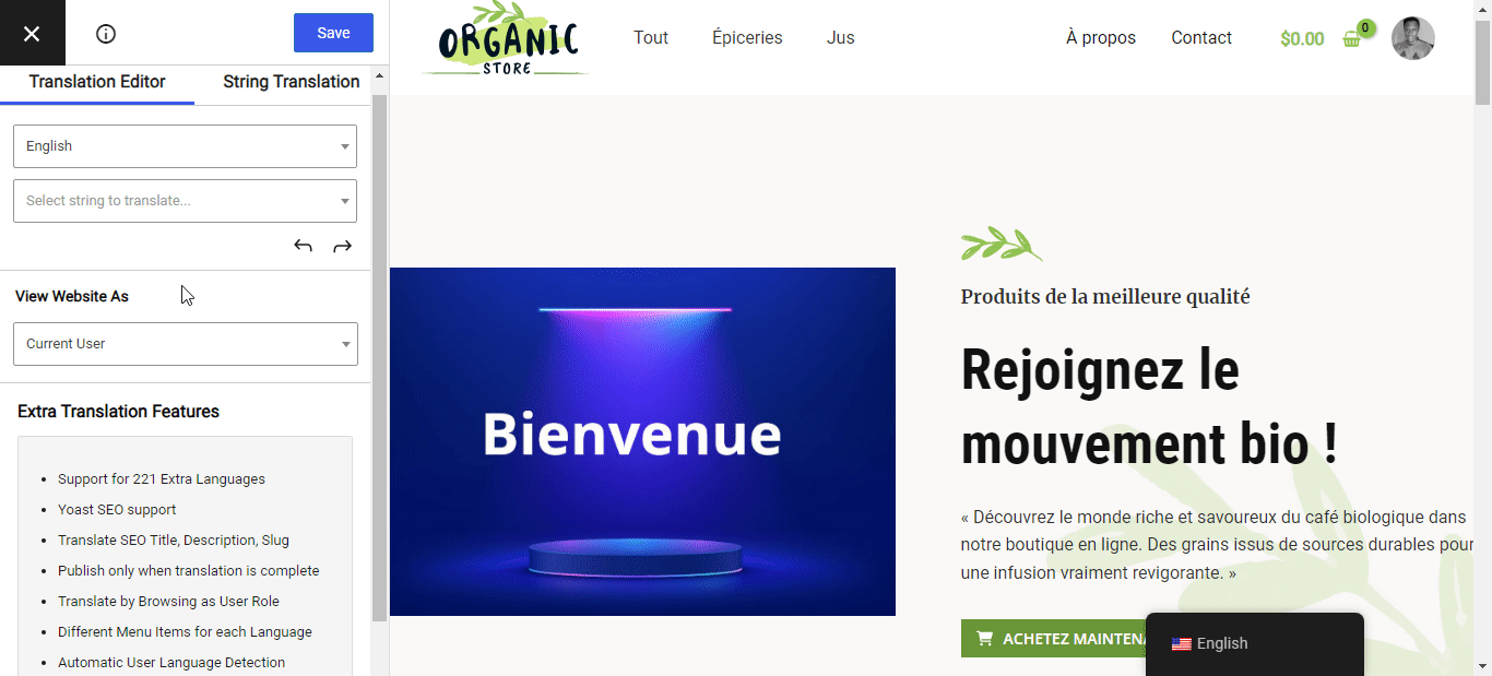 Enfin, vous pouvez utiliser le même processus pour traduire votre site Web de l’anglais vers le français.