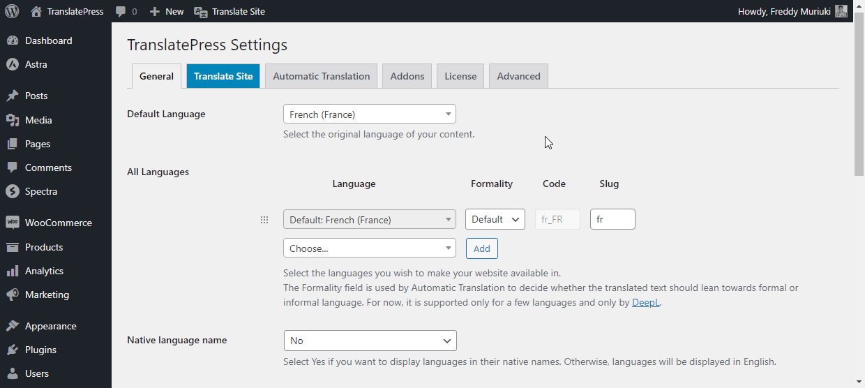 Comment traduire un site Web français vers l'anglais avec TranslatePress