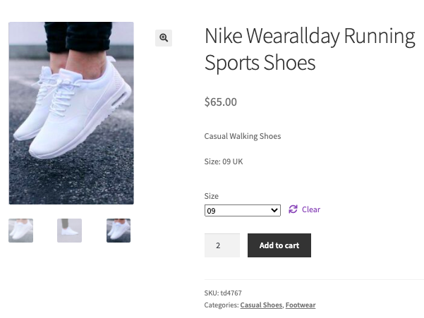 Je vais ajouter des chaussures Nike Sports de mon panier et définir les restrictions de quantité sur 2.