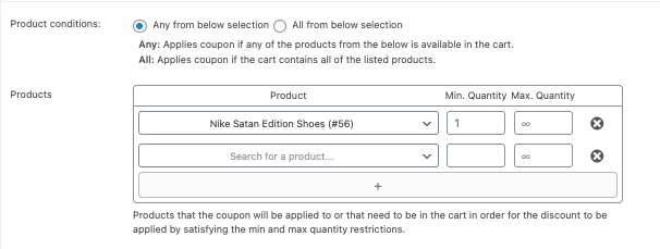 Conformément à la condition ci-dessus, le coupon ne sera appliqué que lors de l'achat de «chaussures Nike Satan Edition» dans mon magasin.