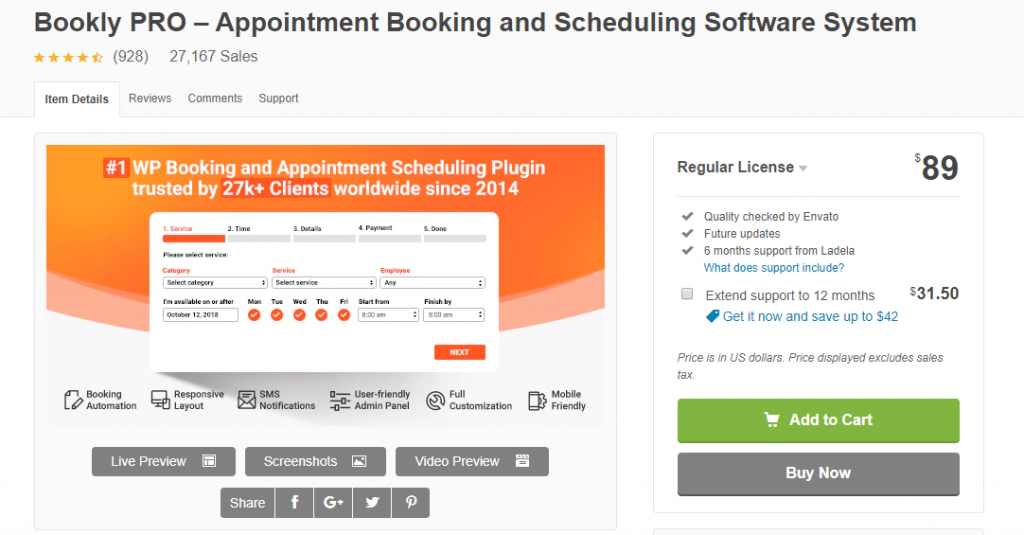Booknetic est un plugin de prise de rendez-vous pour une gamme d'entreprises sur rendez-vous. Le plugin offre une liste complète de fonctionnalités pour automatiser et personnaliser entièrement les procédures de réservation. L'intégration native avec WooCommerce permet aux propriétaires d'entreprise de vendre leurs produits sur leurs sites Web parallèlement aux services de rendez-vous. De plus, le plugin dispose d'un système de relation client. Chaque fois qu'un nouveau client s'inscrit sur votre système, ses données sont automatiquement enregistrées dans le tableau de bord client. De plus, il existe d'autres taxes et fonctionnalités de service supplémentaires qui aident à rationaliser l'activité globale de rendez-vous.