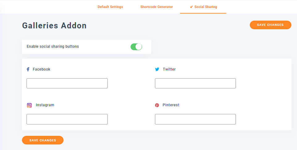Le troisième est d'activer et de configurer le partage social. Vous pouvez ajouter vos liens de profil Facebook, Twitter, Instagram et Pinterest.