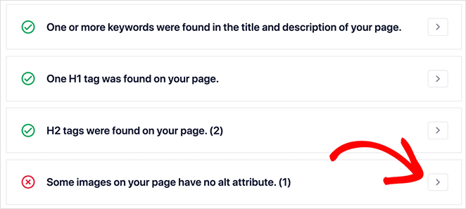 Setelah mengisi detail SEO untuk konten Anda, Anda dapat melihat bagian Analisis Halaman untuk melihat apakah Anda melewatkan sesuatu yang penting. Daftar periksa praktis ini memastikan bahwa Anda memasukkan kata kunci di tempat yang tepat, memiliki tautan internal dan eksternal, dan konten Anda cukup panjang dan mudah dibaca.