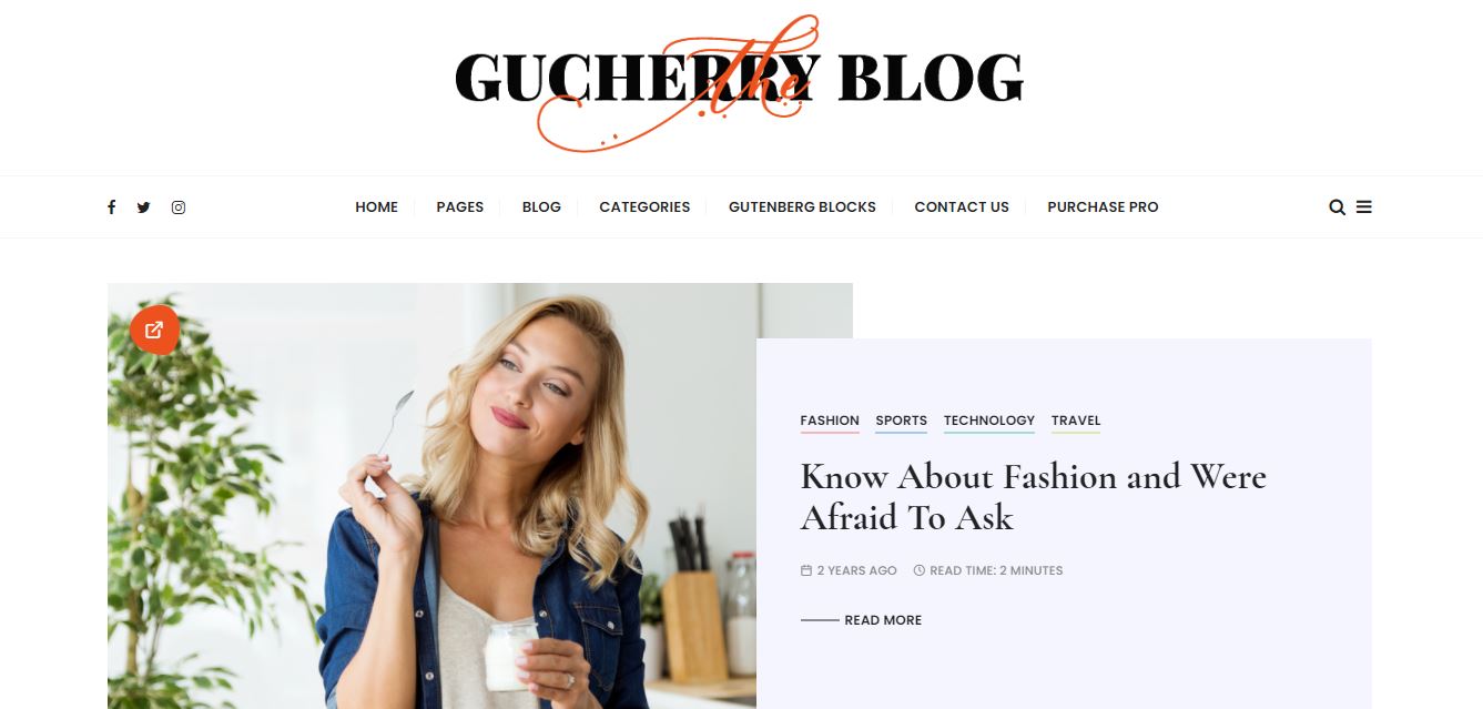 Gucherry Blog adalah tema WordPress yang akan memberi Anda nilai sebenarnya dari fashion dan perjalanan.