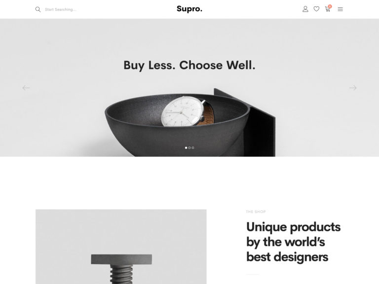 Gaya Anda mungkin minimalis, tetapi dengan Supro, set fitur Anda tidak harus begitu. Dengan demikian, ini adalah tema yang ideal bagi siapa saja yang ingin membawa toko online mereka ke tingkat berikutnya.