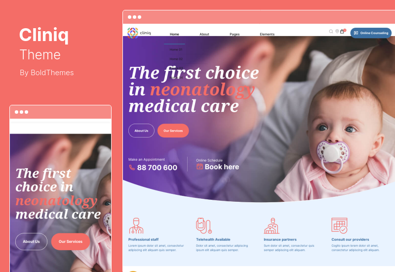 Dengan menggunakan tema Neonatologist ini, Anda dapat membuat situs web dengan berbagai fitur industri medis, baik untuk klinik hewan, klinik kehamilan, atau klinik gigi.