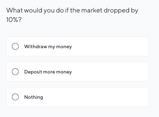 Bagian pensiun dimulai dengan menanyakan berapa banyak yang sudah Anda simpan. Pertanyaan berikutnya adalah tentang risiko keuangan dan bagaimana Anda menangani fluktuasi pasar: